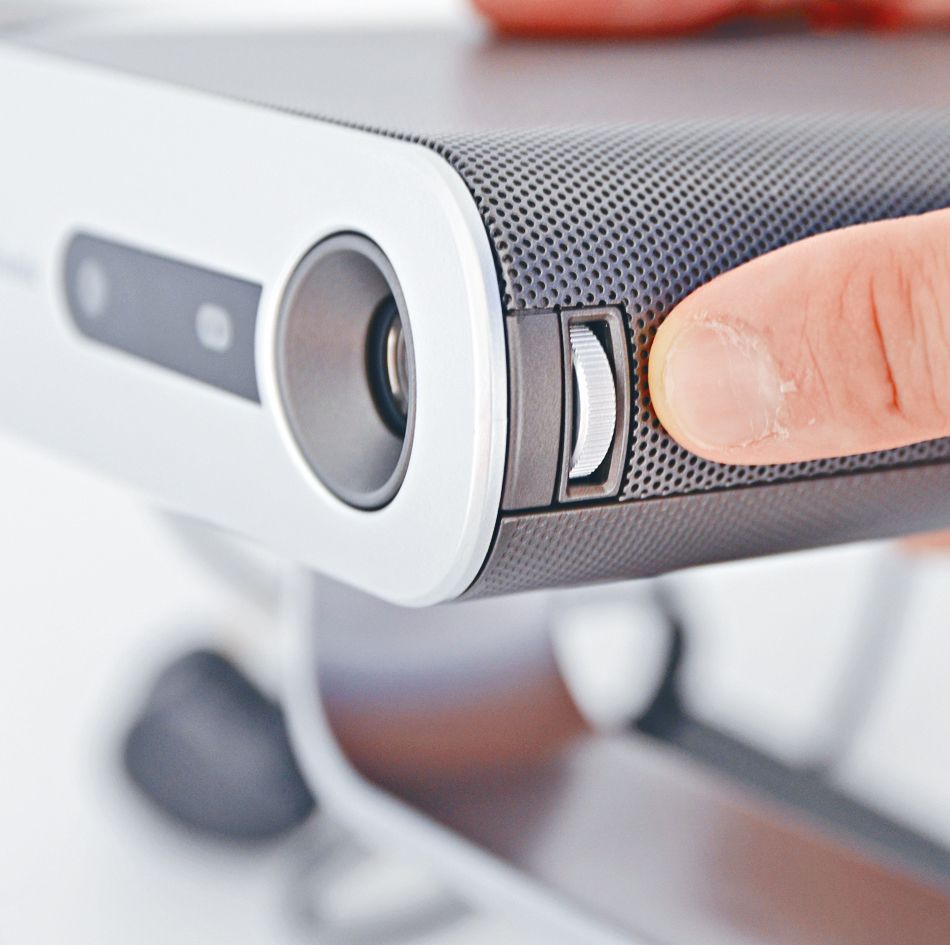 M1-JBL投影機榮獲2018年iF產品設計獎,使用廠方獨家SuperColor技術,令影像色彩表現飽滿,隨機更設有一個可以多角度旋轉的「L」形腳架,能夠三百六十度轉動作流動投影。不要以為這只適用於外出辦公簡報,事關機身配備JBL喇叭系統,觀賞電影或球賽,音效細緻度高,調校至最大輸出時,竟沒有「拆聲」情況出現,絕對可作為流動私人影院裝備!此機內建Micro-SD記憶卡讀卡槽、USB槽,可獨立播放影片,機身內置16GB記憶體,用家可把心愛影片儲存在機身,即開即看。重量方面,連電池不到1kg,增強了隨身攜帶的便利性。售價:$3,299