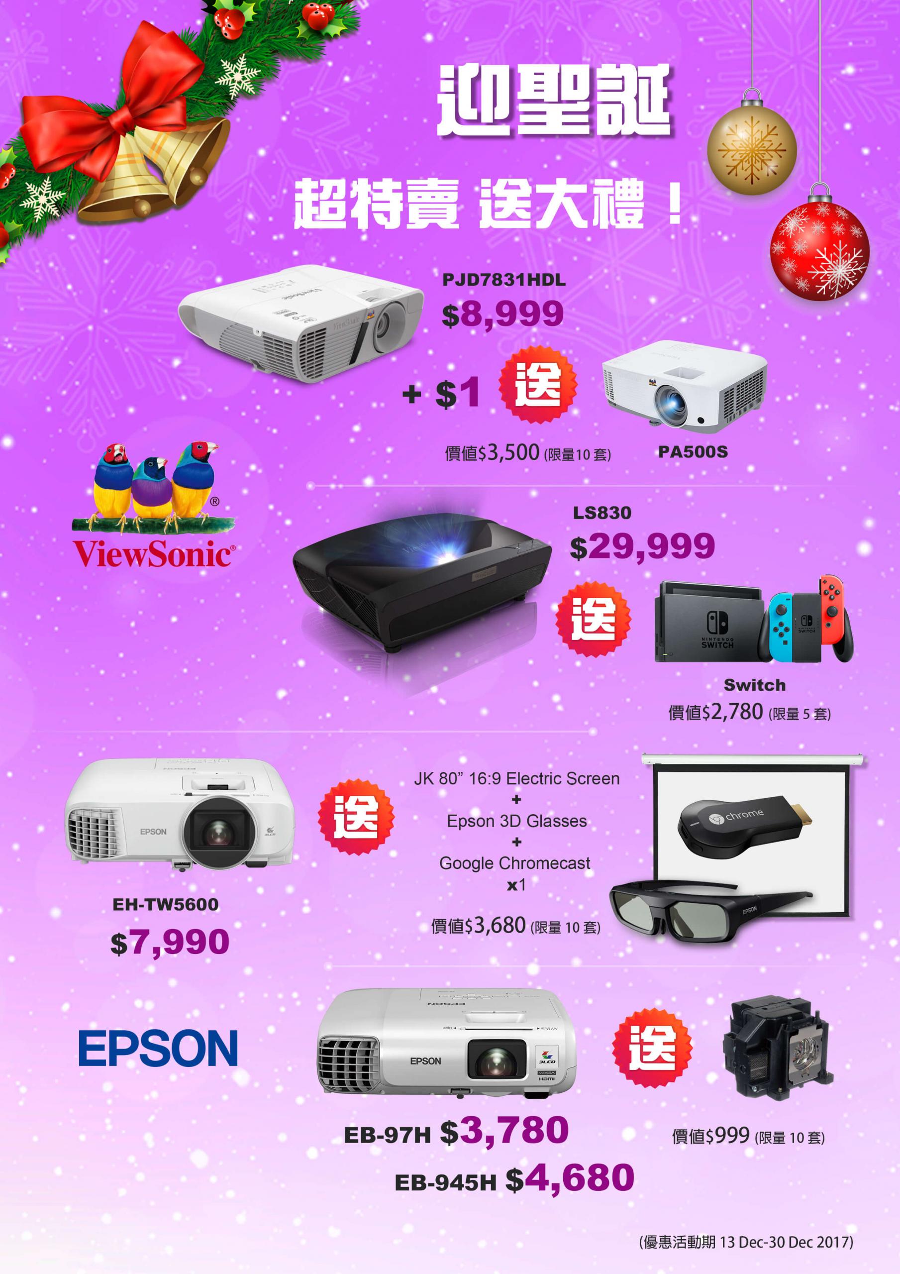 叮叮叮…眨下眼聖誕節又快到啦,12月亦是精明購物慳錢良機好季節。【香港投影】與衆同樂賀聖誕,推出「 迎聖誕 送大禮!」超特賣活動,購買活動指定幾款投影機分別送出相應不同大禮,齊齊開心過佳節!