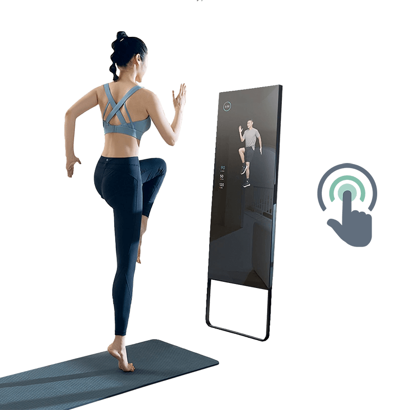 - 一鏡兩用:平時是時尚落地鏡,開機變身高清互動運動大屏幕。