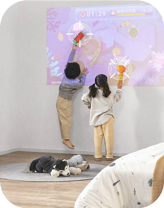 目前娛樂板塊有4個,分別是探索類、體育類、 扮演類、益智類遊戲,海量遊戲主題加情景化互動的遊戲體 驗可以激發小朋友的運動興趣,提昇運動能力,助力兒童潛能並開發關鍵期。