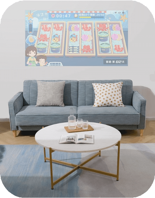 設備小巧,移動方便,投影畫面靈活調整,客廳、兒童房、書房等多場景適用
