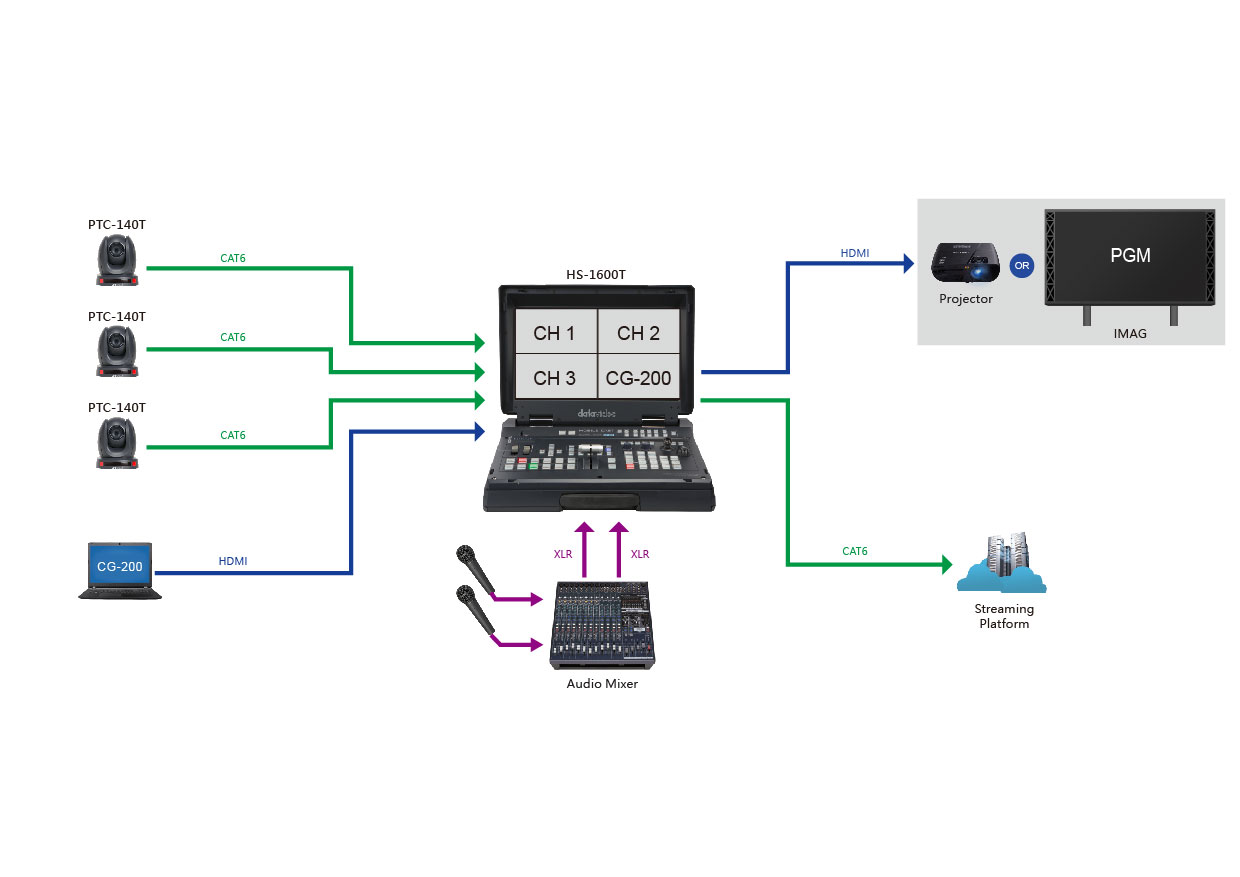 搭載HDBaseT技術,僅用一條CAT6傳輸線就可以將未壓縮的影像訊號、攝影機控制訊號、電源和Tally訊號傳送到一百米之外。
