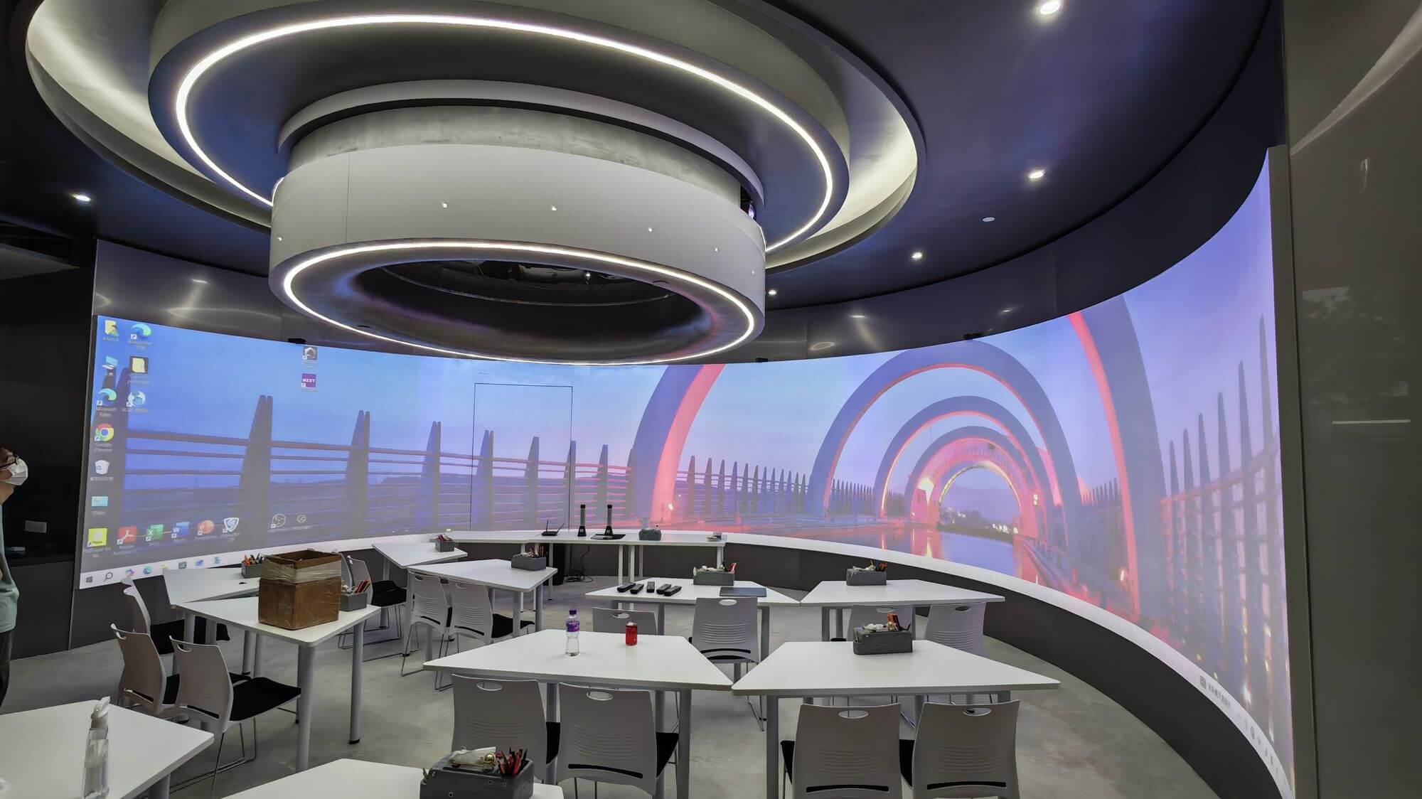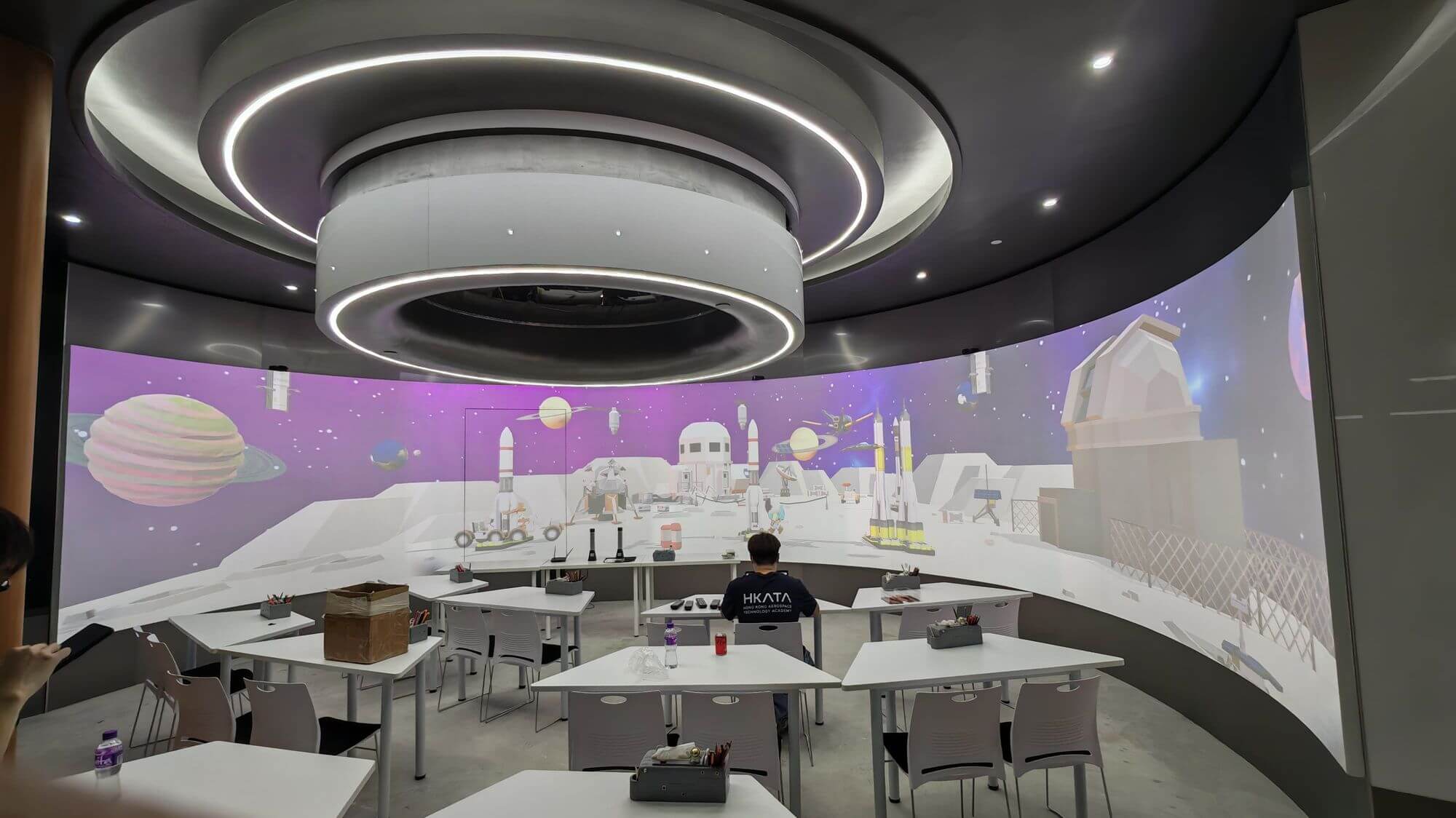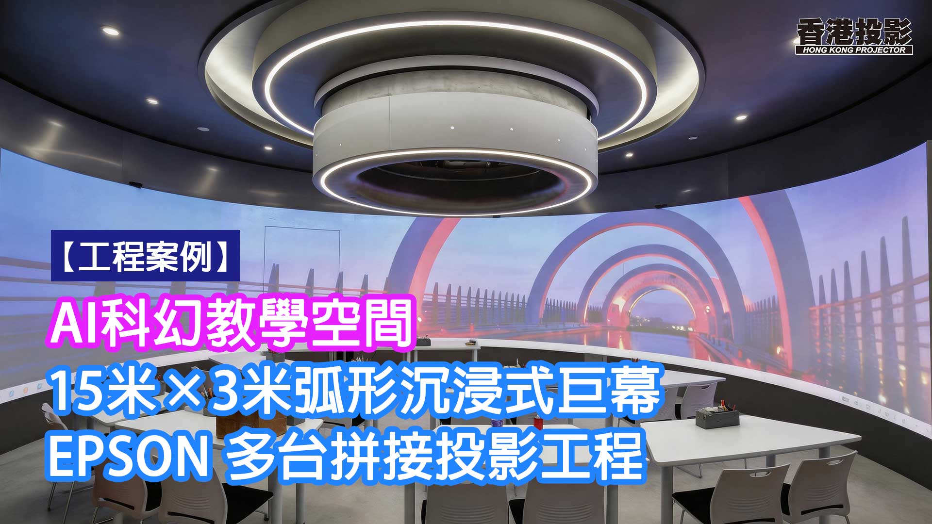 【工程案例】AI科幻教學空間|15米×3米弧形沉浸式巨幕 EPSON 多台拼接投影工程