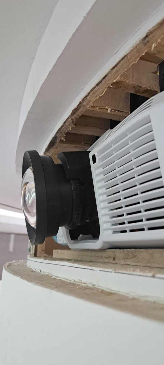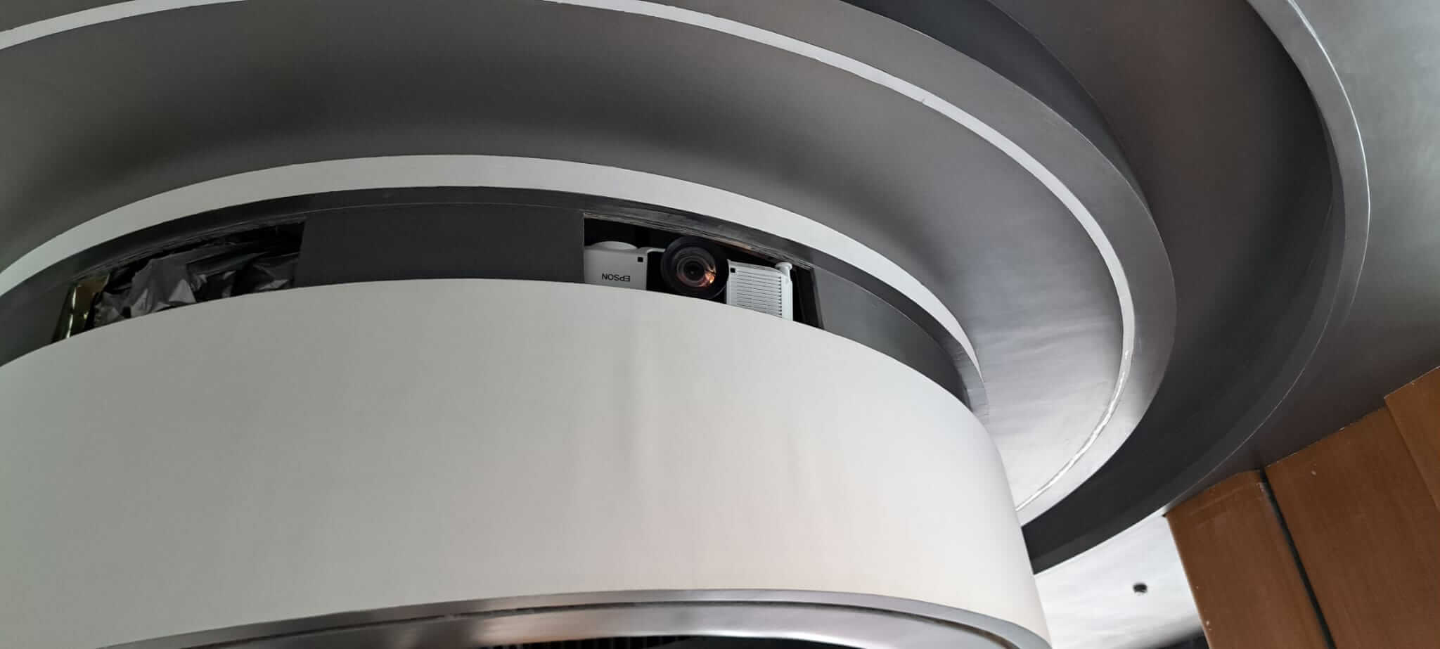 這個設計構想極具視覺衝擊力,但對安裝工程提出了極高的技術要求。弧形屏幕的投影需要極其精密的幾何校正,而將投影機隱藏於天花裝置內,更大大限制了安裝空間和調校靈活性。