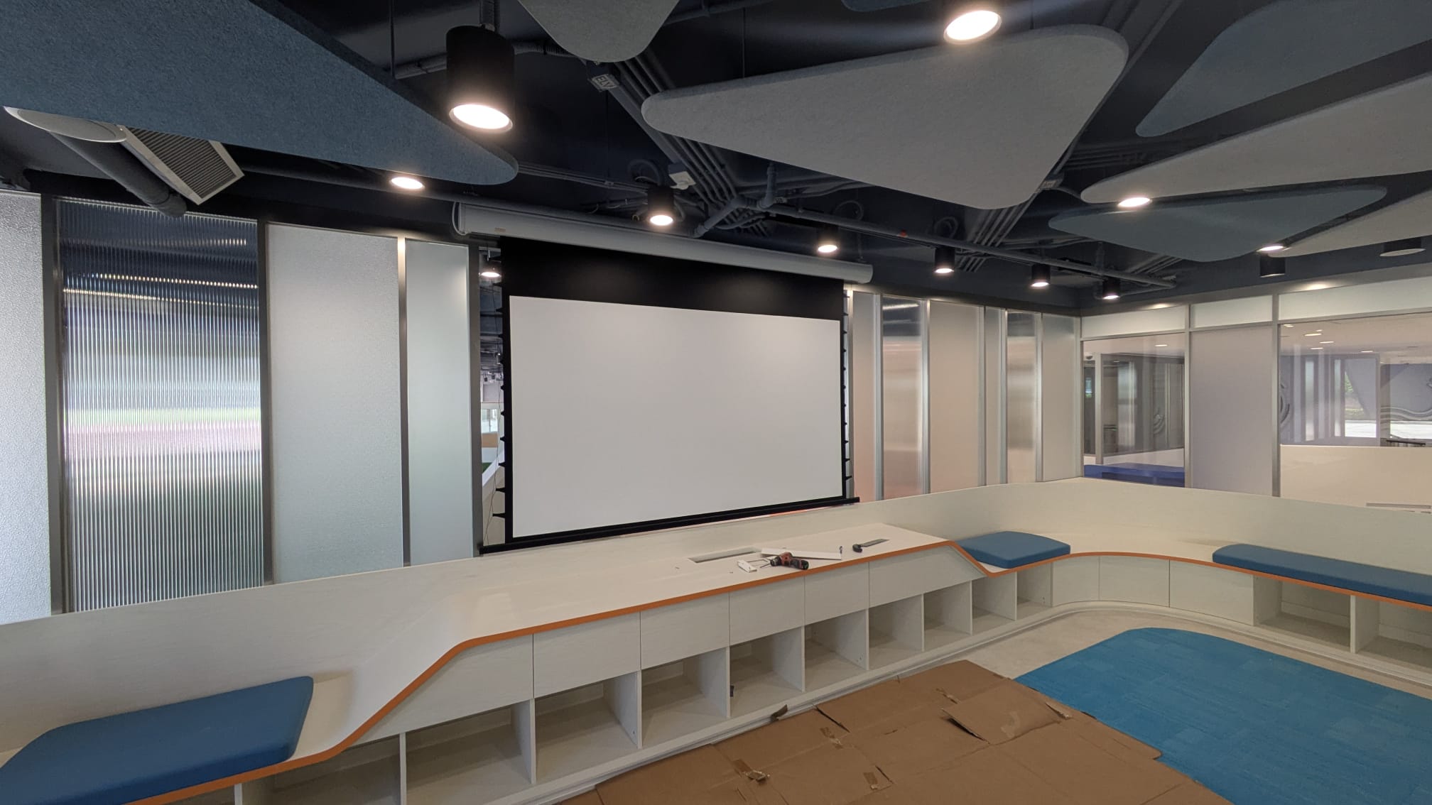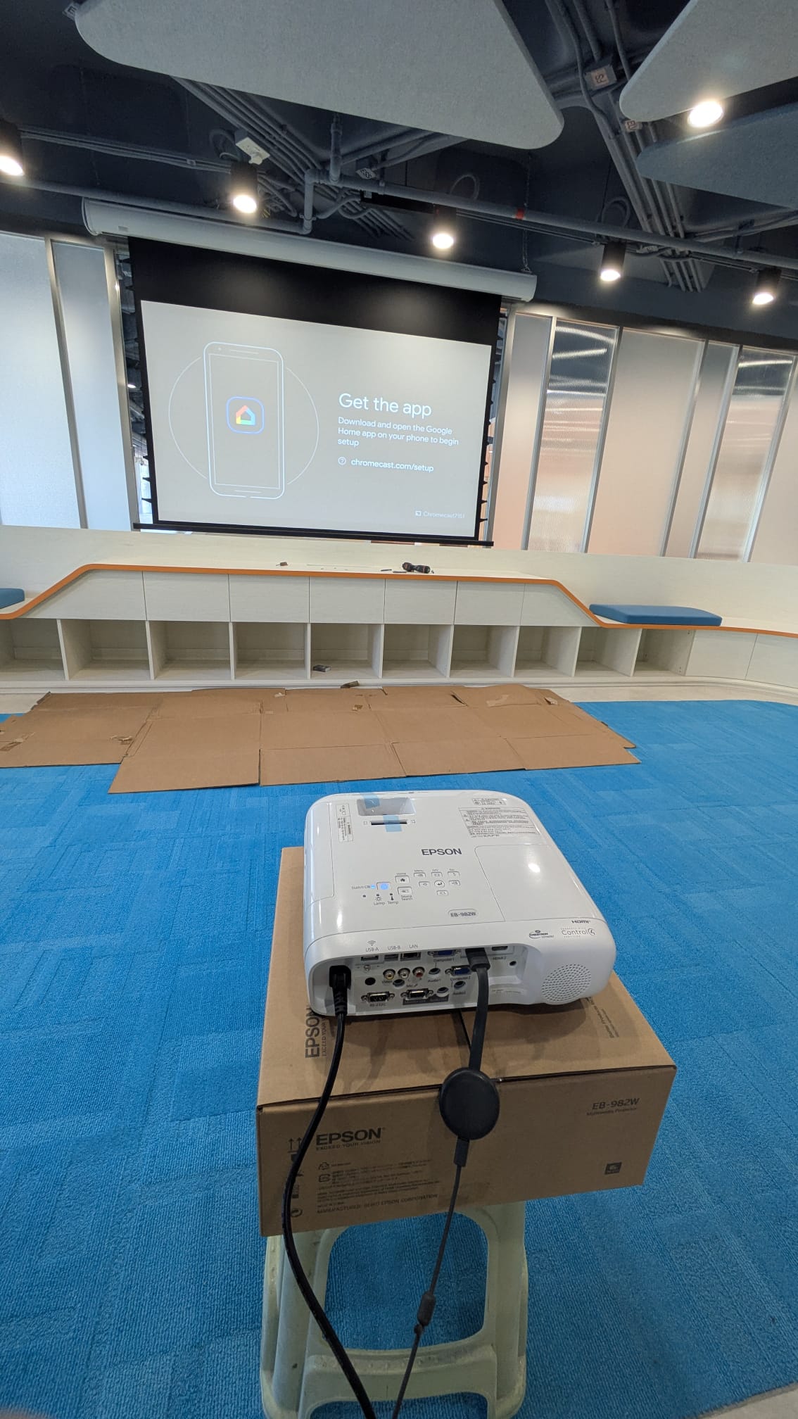 Epson EB-982W / AOV A3-FL 100" Electric Screen / 納米抗光黑晶地拉幕