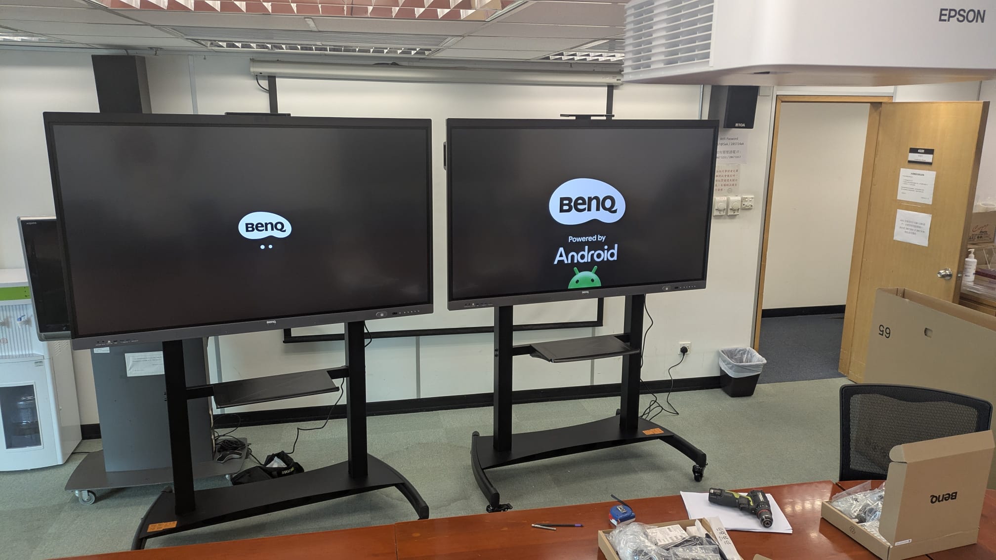 Epson EB-982W / AOV A3-FL 100" Electric Screen / 納米抗光黑晶地拉幕