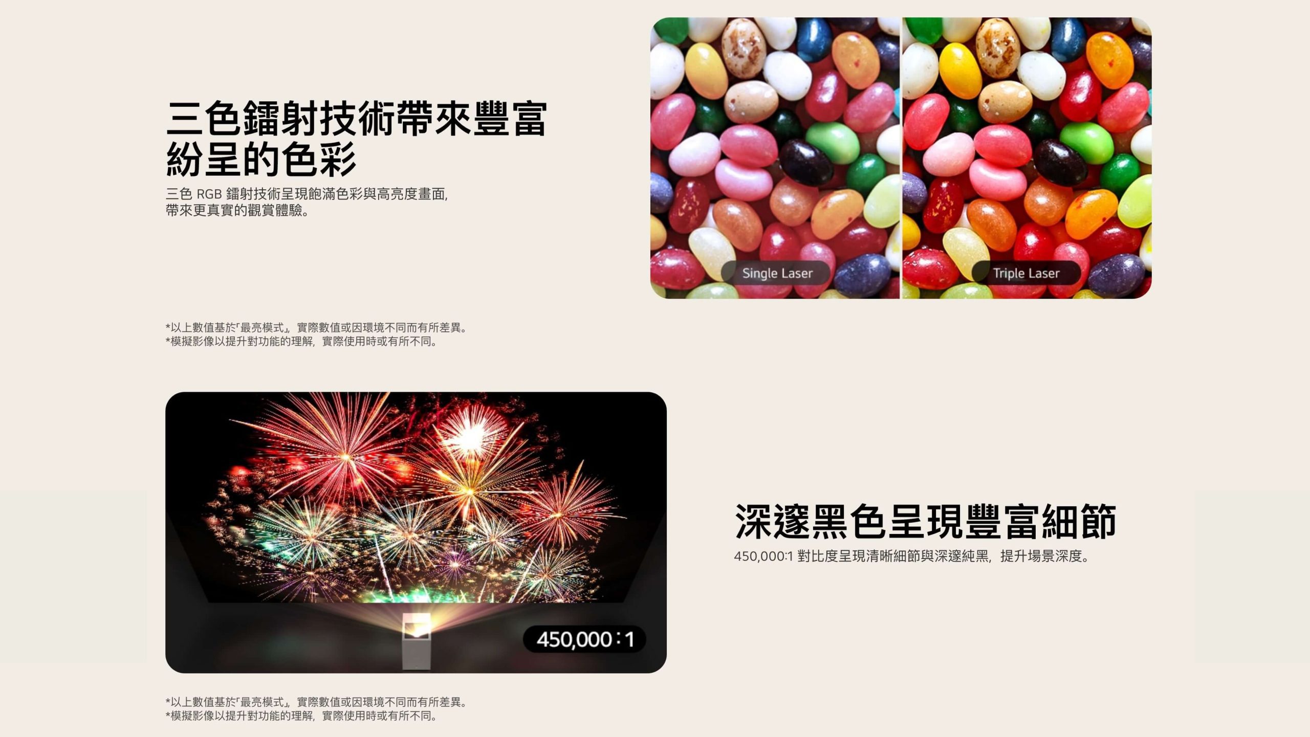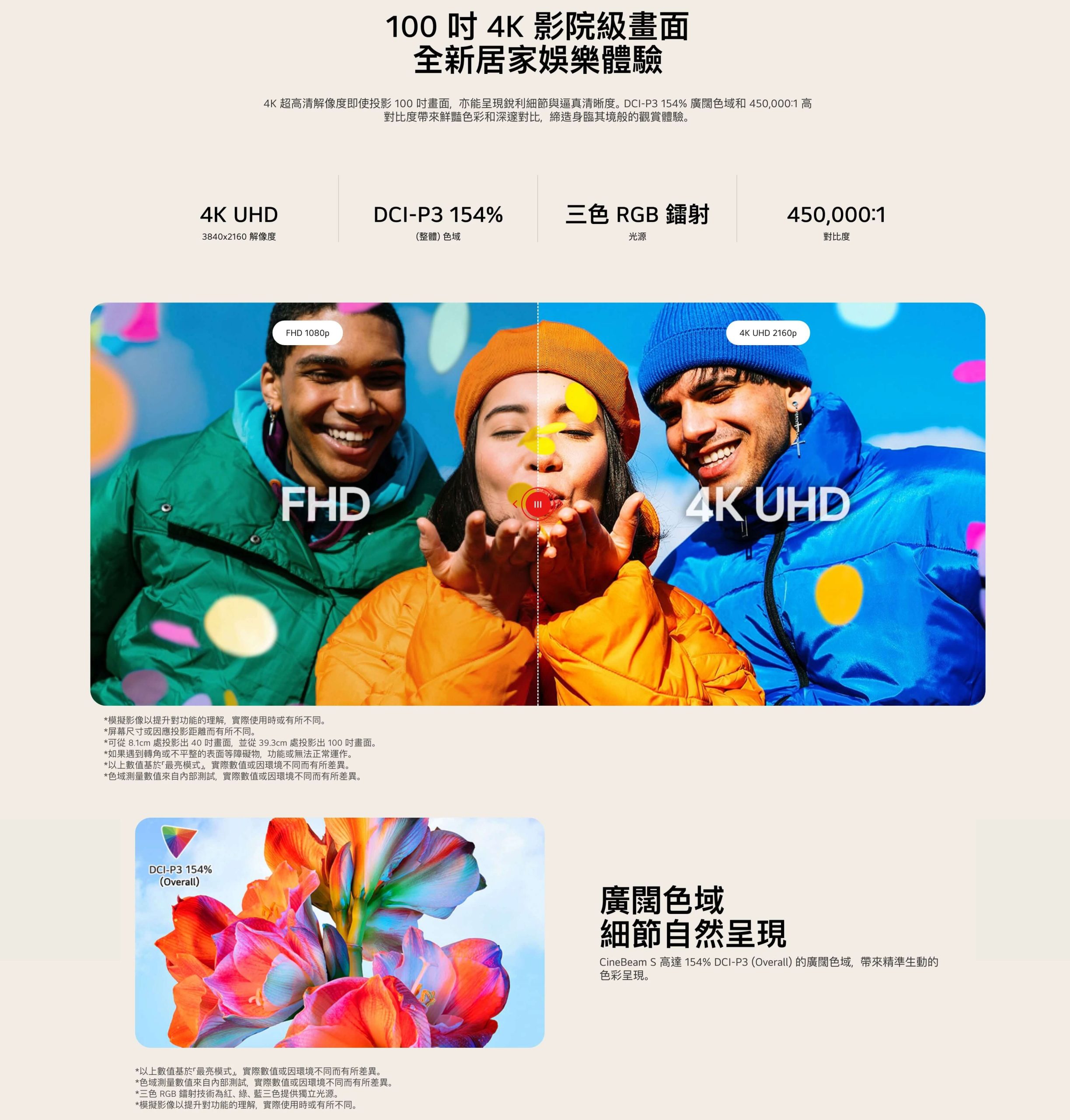 - DCI-P3 154% (Overall)、三色 RGB 鐳射