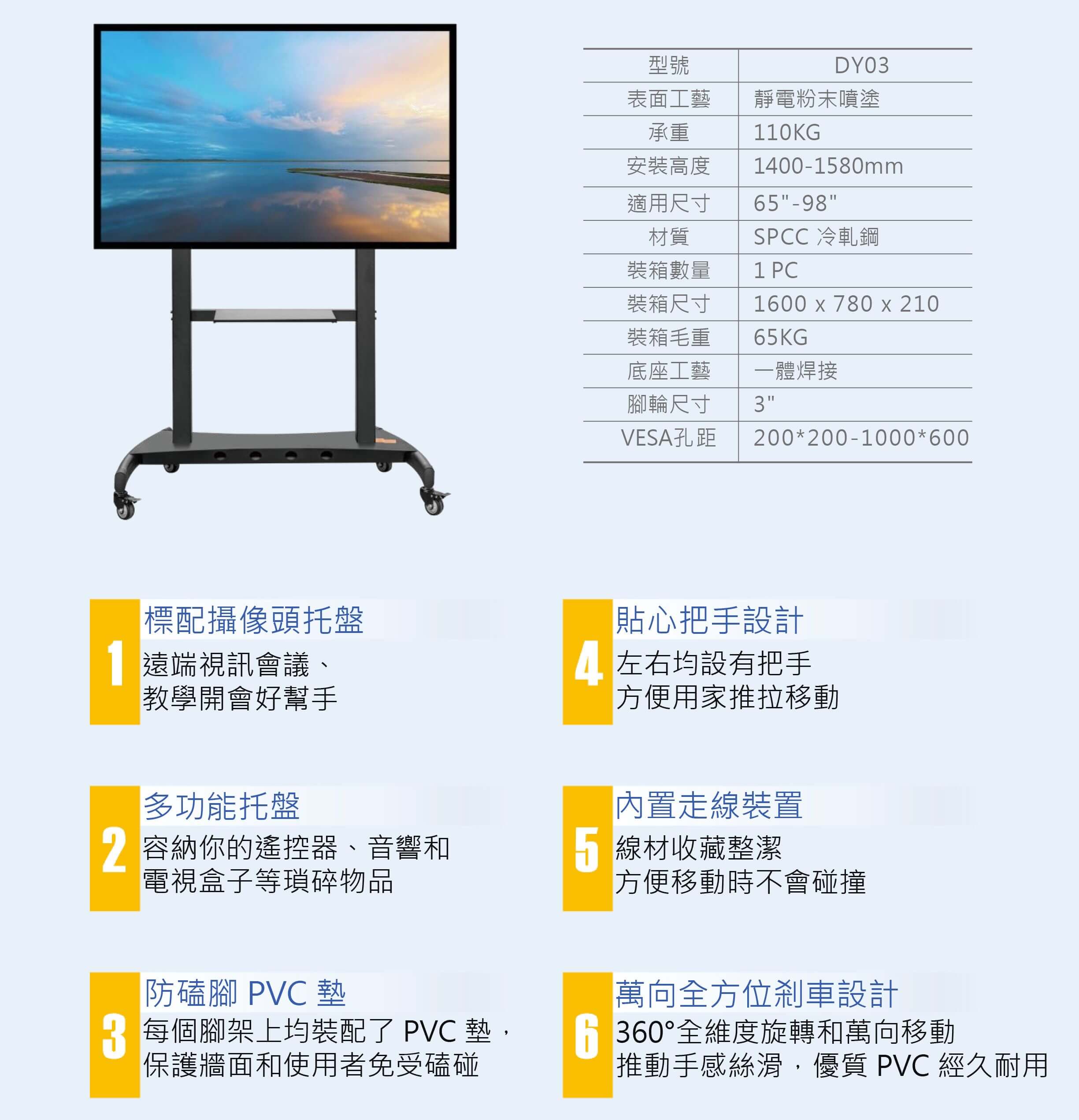 移動支架 DY03 適合 65吋~98吋