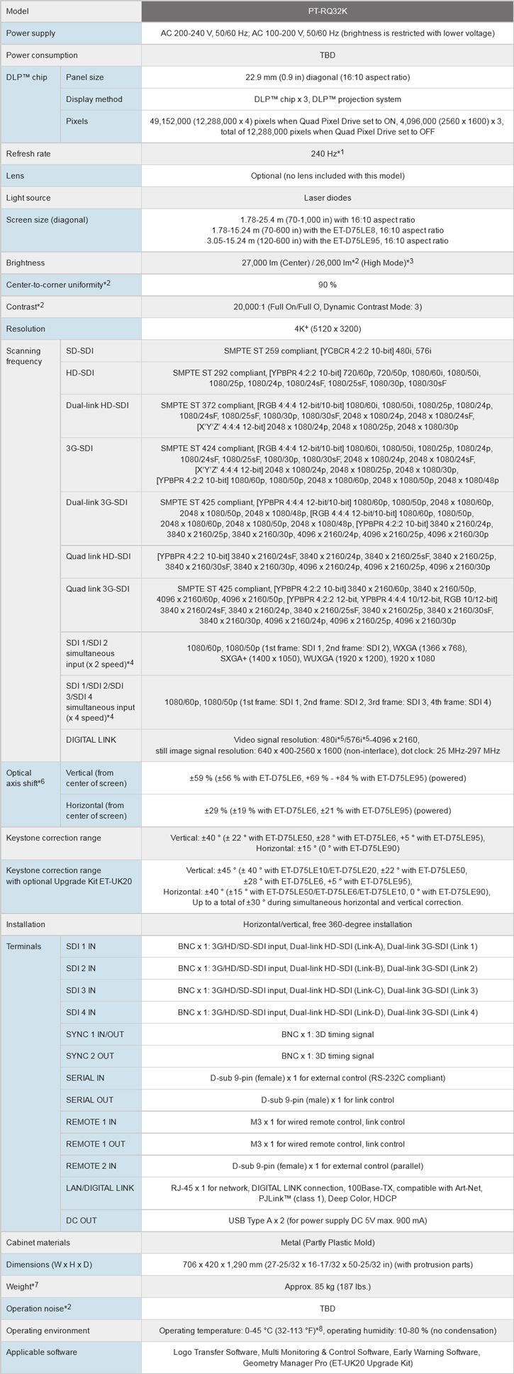 *5 Only compatible with dot clock frequency of 27 MHz (pixel repetition signal). Optical axis shift is not supported on the ETD75LE50.
