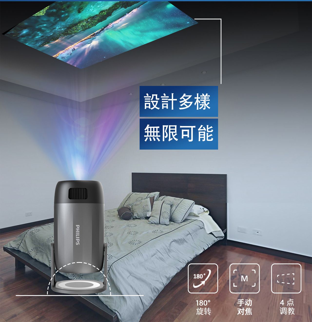 NeoPix 150 為您帶來前所未有的娛樂體驗。它小巧緊湊,可將任何空間變成您的專屬劇院。其創新的 180 度旋轉支架,讓您幾乎可以在任何平面上輕鬆投影。