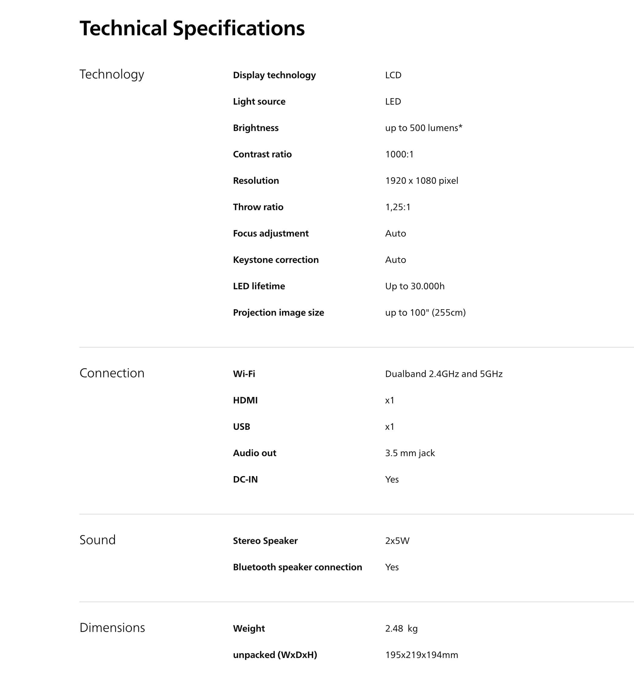 Specification: PHILIPS 飛利浦NeoPix 450 Smart 投影機 NPX450/INT