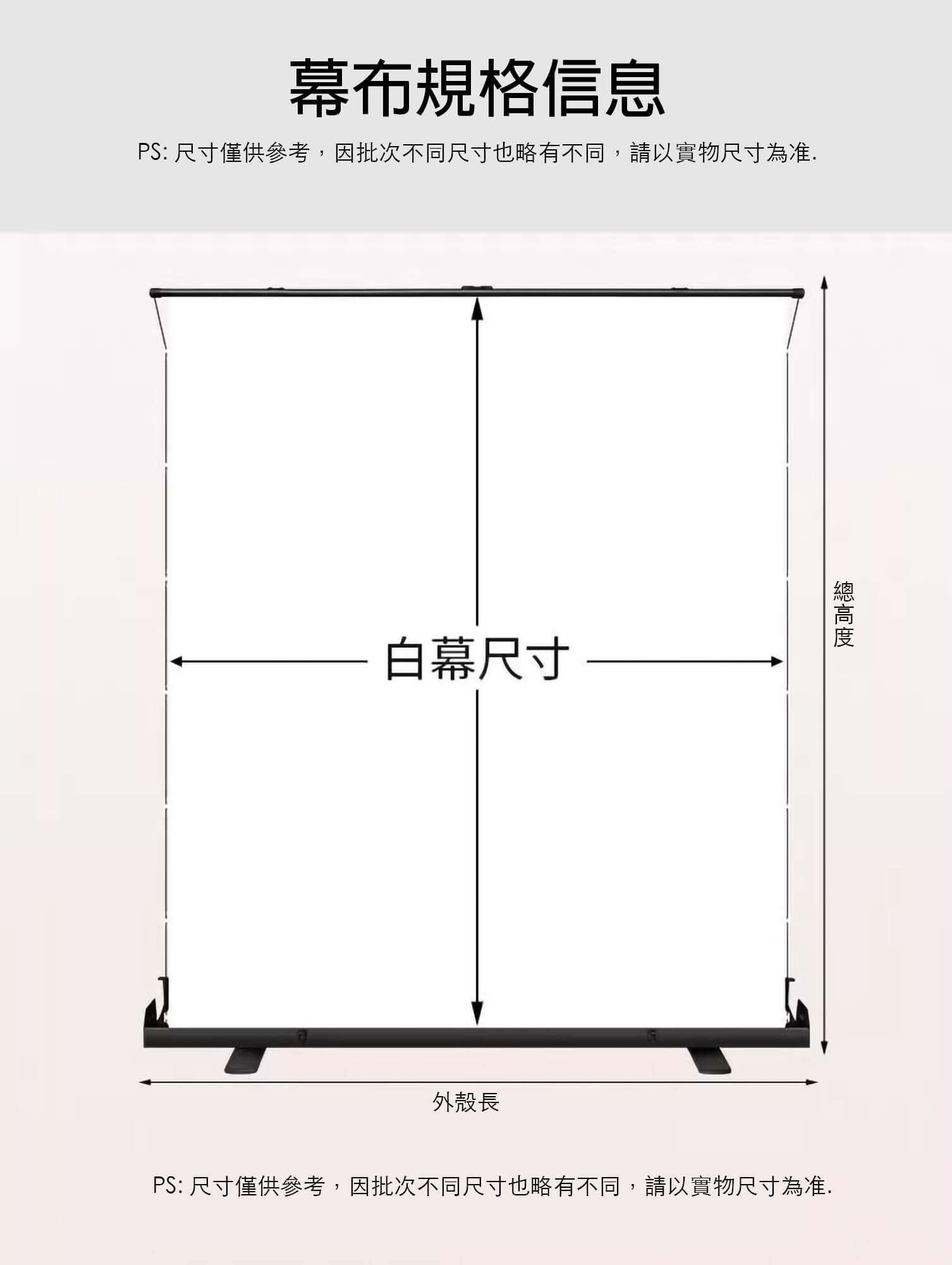 請避免陽光直射或雨水淋濕,以減緩幕布老化;