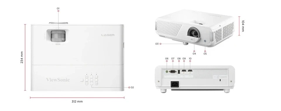 Specification: ViewSonic LX720-4K 3,500 ANSI 流明 4K 智慧雷射家用投影機 [COMING SOON]